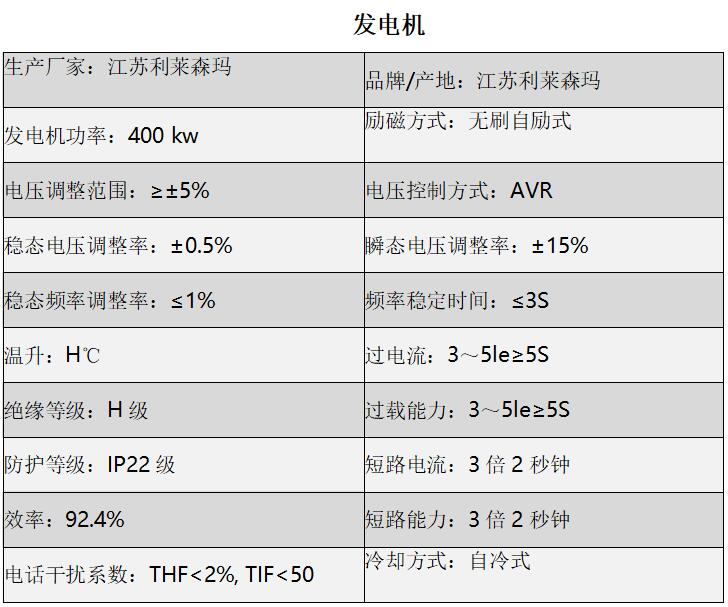 ★ 隨機資料:柴油機及發(fā)電機原廠技術(shù)文件、發(fā)電機組說明書、測試報告等。
