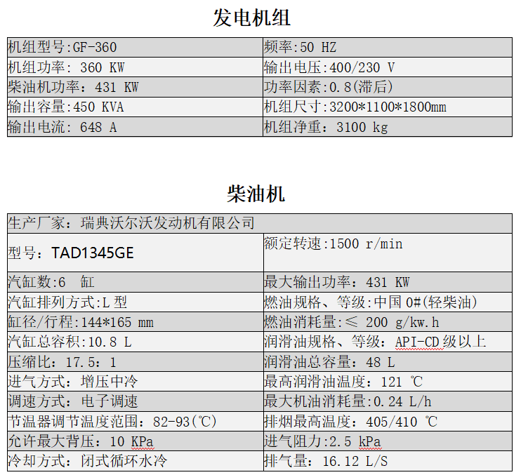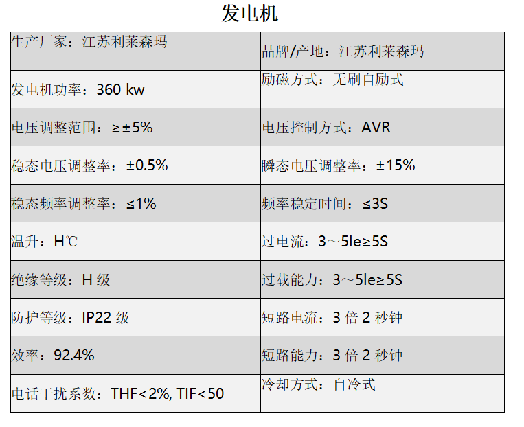 隨機(jī)資料:柴油機(jī)及發(fā)電機(jī)原廠技術(shù)文件、發(fā)電機(jī)組說明書、測試報(bào)告等。