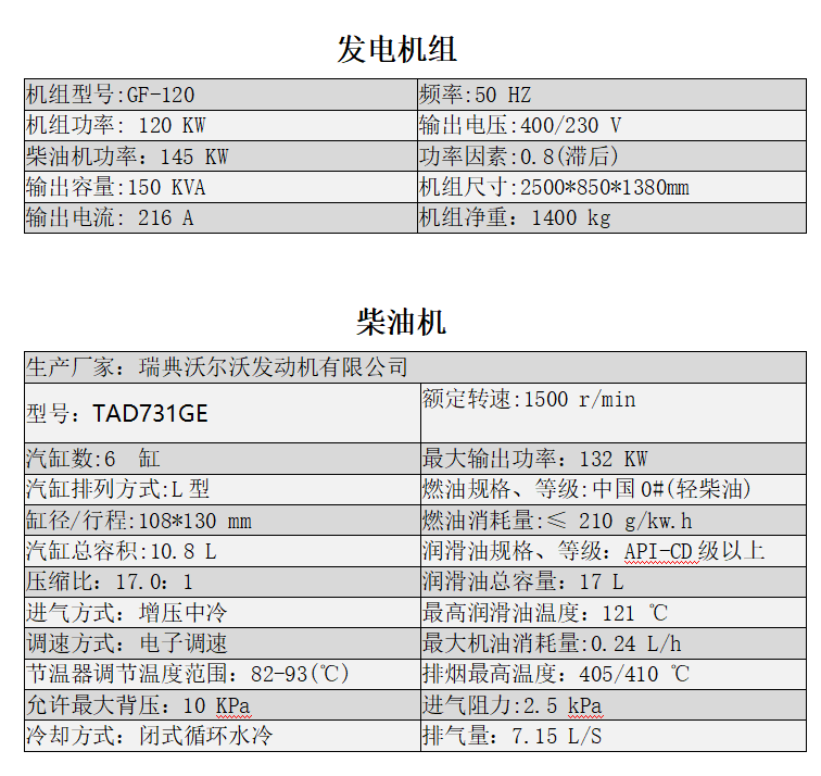 ★ 隨機資料:柴油機及發(fā)電機原廠技術文件、發(fā)電機組說明書、測試報告等。